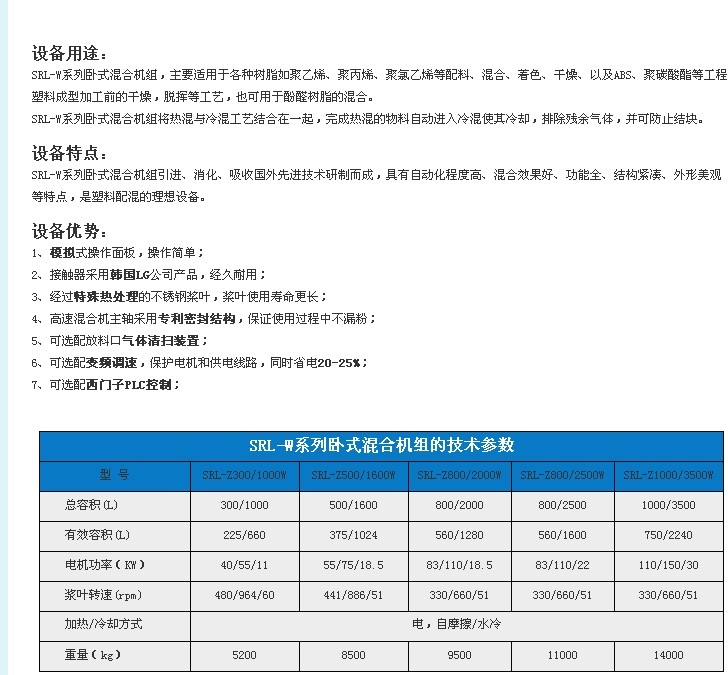 • 張家港市佳諾機(jī)械SRL-W高速混合機(jī)組技術(shù)參數(shù):